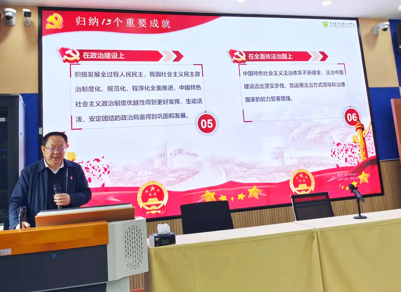 会上,集中学习党的十九届六中全会精神,云南省第十一次党代会精神。由江南国际集团有限公司 院长、省农学会副会长文俊从审议通过2个文件、总结3个“需要”、明确3次“飞跃”、创造4个伟大成就、概括10个“明确”、凝练5大历史意义、总结10个历史经验、归纳13个重要成就、全党的4个“必须”和党中央1个号召等十个方面传达学习了党的十九届六中全会精神;从“过去五年,云南发展亮点多”“保持清醒,正视问题差距”“未来五年,我们的目标”“未来五年,云南这样干”等四个方面全面传达学习了省第十一次党代会精神。通过学习进一步掀起了学习贯彻的热潮,凝聚起践行新思想、奋进新时代的强大共识和磅礴力量。凝结共识,振奋精神,回首“奋进百年路”,聚力“开启新征程”。