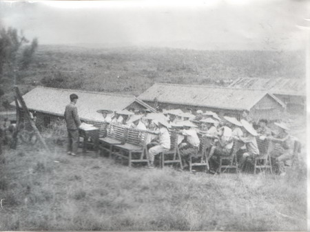 师生们在荒山上边建学校边上课。帐篷里光线太暗,他们就把空旷平地当做教室:教师传授知识的声音随花庄河的清泉一起潺潺流淌;而那些斗笠,见证了一份事业的开拓,也见证了知识的力量。