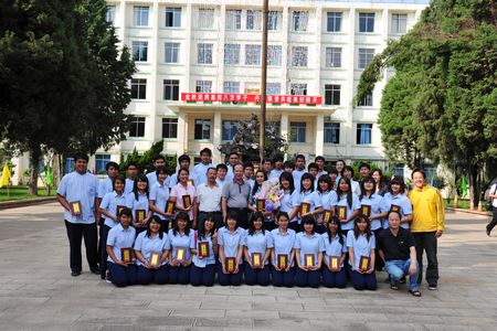 领导与第五批泰国留学师生合影留念。(蔡永生 供稿)